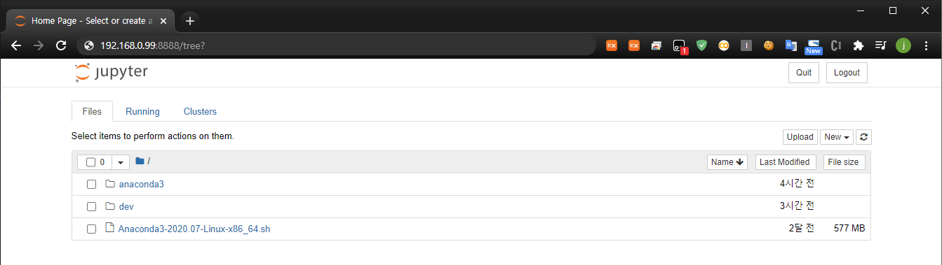 처음 접속한다면 브라우저 상에서 token 을 입력하라는 창이 나오면,